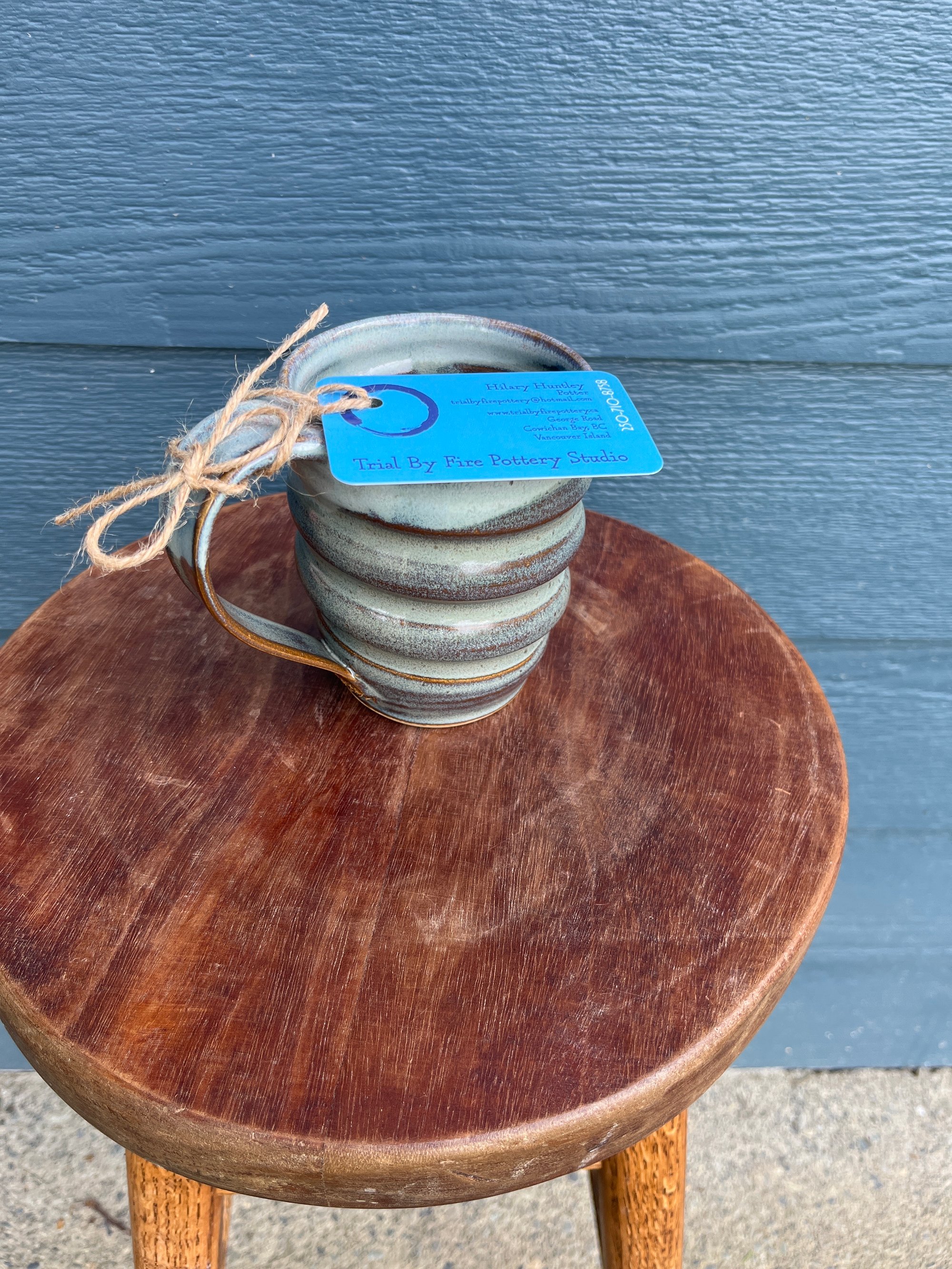 Mug has throw rings which show the path of the last pull when the clay is wet and fluid.